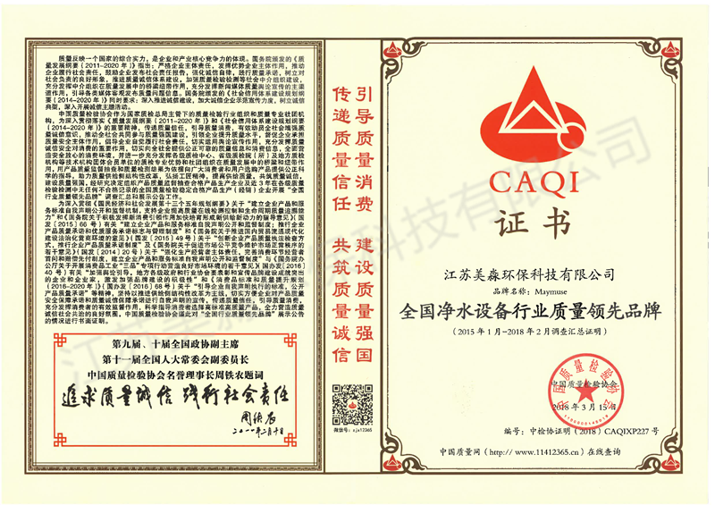 2018年-全國凈水行業質量領先品牌